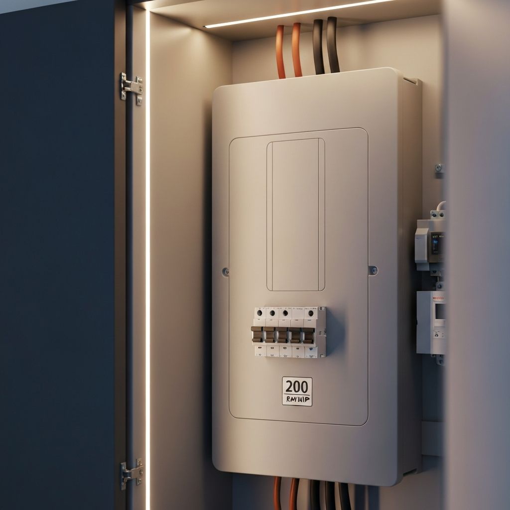 200-amp service upgrade with new breaker panel installation for a growing family home requiring additional capacity for modern appliances and EV charging.
