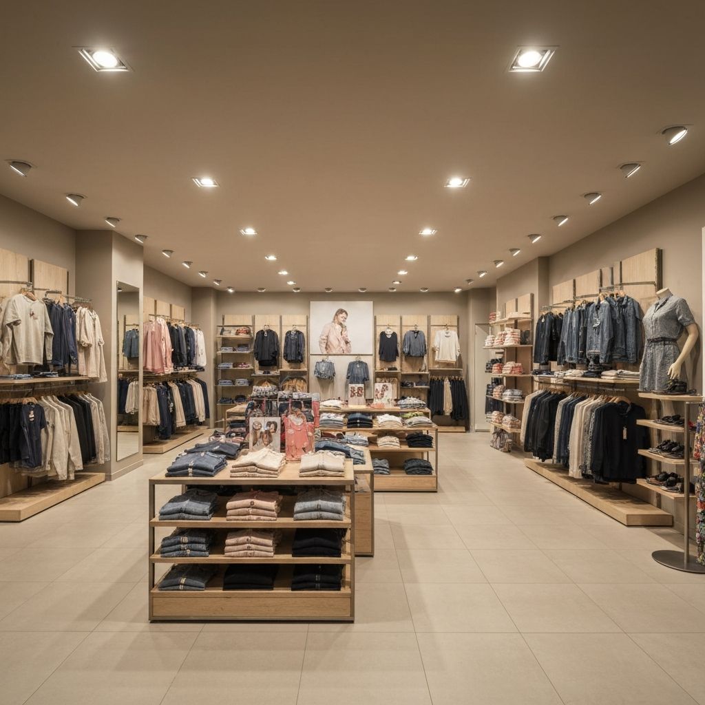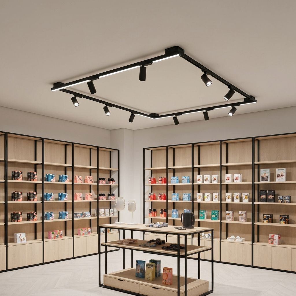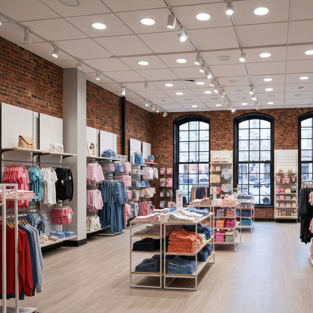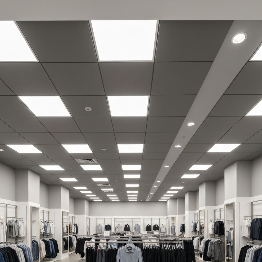 Complete LED lighting upgrade for a 5,000 sq ft retail location. Replaced all fluorescent fixtures with energy-efficient LED panels and track lighting.